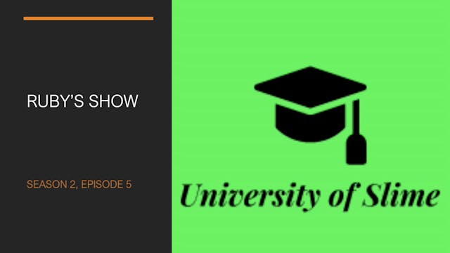 Ruby's epic show kicks off with a great opening sliming! After we find out a little more about our latest enrolee, its time to introduce her to the University of Slime with a very colourful debut sliming!